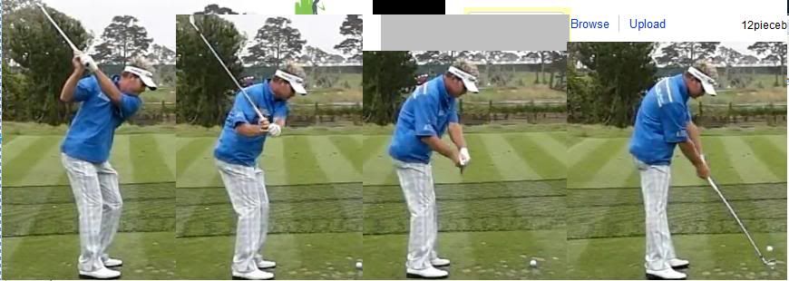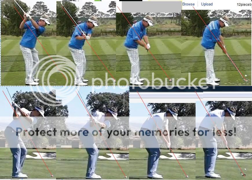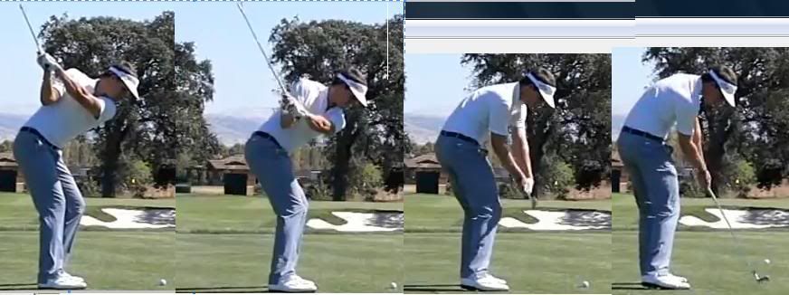 Lovemark on the other hand I would say has an entirely different intention in terms of where his hands are being directed. Note the difference in the relationship of the shoulders to the hands. Note the angle of the left arm when it is parallel to the ground and its relationship to the stance line. Note the difference in the relationship of the left arm to the ground at "delivery" . . . Lovemark seems to be directing his hands at a point INSIDE the plane line . . . and the respective shoulder motions seem to me to support this "intention".